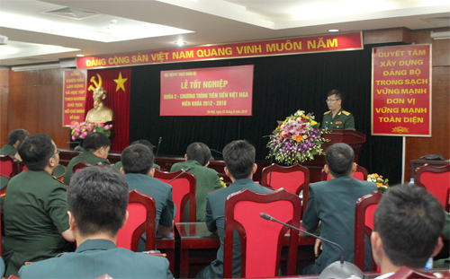 Trong phần phát biểu của mình, Thiếu tướng Lê Kỳ Nam – Phó Giám đốc Học viện đánh giá cao những nỗ lực, quyết tâm của học viên lớp Chương trình Tiên tiến Việt Nga trong những năm tháng học tập tại Học viện. Thành công hiện tại của khóa học là kết quả của sự quan tâm kịp thời của thủ trưởng các cấp, đội ngũ thầy cô giáo, cán bộ quản lý, cùng sự động viên khích lệ của thân nhân gia đình học viên. Đồng chí gửi lời chúc tốt đẹp nhất đến toàn thể các học viên đã tốt nghiệp. Mái trường Học viện KTQS thân thương vẫn luôn sẵn sàng chờ đợi để các đồng chí tân sĩ quan tiếp tục quay về với những bậc học cao hơn trong tương lai.