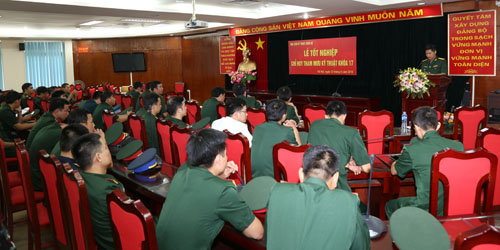 Sáng 22/6, Học viện KTQS đã long trọng tổ chức Lễ tốt nghiệp cho 42 học viên Lớp Chỉ huy Tham mưu Kỹ thuật (CHTMKT) Khoá 17. Dự và chỉ đạo buổi Lễ có Đại tá Lê Minh Thái – Phó Giám đốc Học viện. Tới dự buổi Lễ còn có chỉ huy, trợ lý, nhân viên Phòng Sau đại học và đại diện chỉ huy các đơn vị Phòng Chính trị, Khoa Quân sự, Khoa CHTMKT, Hệ Quản lý Học viên Sau đại học và đông đủ học viên Lớp CHTMKT Khoá 17.