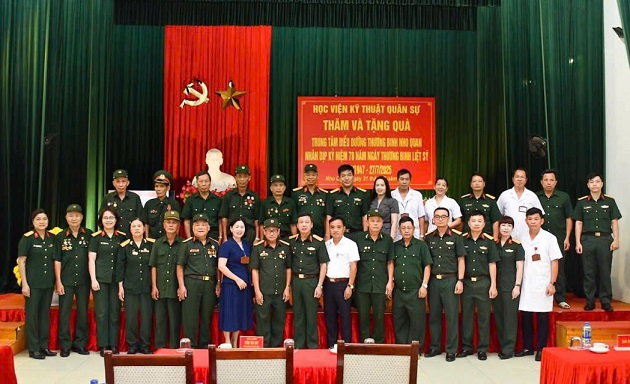 Nhân dịp kỷ niệm 78 năm Ngày Thương binh – Liệt sĩ, từ ngày 15/7 – 23/7/2025, Đoàn công tác của Học viện đã tổ chức đến dâng hương tại các đài tưởng niệm liệt sĩ; thăm và tặng quà Mẹ Việt Nam anh hùng; khám, tư vấn chăm sóc sức khỏe người có công, thân nhân liệt sĩ trên địa bàn Học viện đóng quân; thăm, tặng quà các Trung tâm Điều dưỡng thương binh.