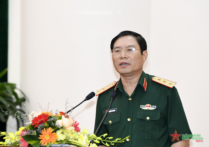 Thượng tướng Nguyễn Tân Cương phát biểu tại Hội nghị (Ảnh: TUẤN HUY)