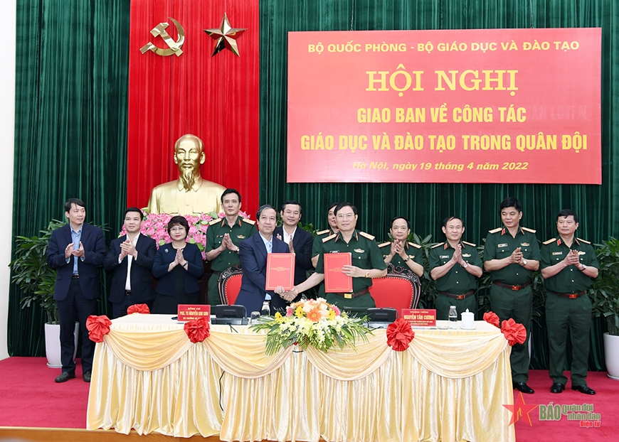 Trong khuôn khổ Hội nghị, Bộ Quốc phòng cùng Bộ Giáo dục và Đào tạo đã ký kết chương trình phối hợp giai đoạn 2022 – 2025.