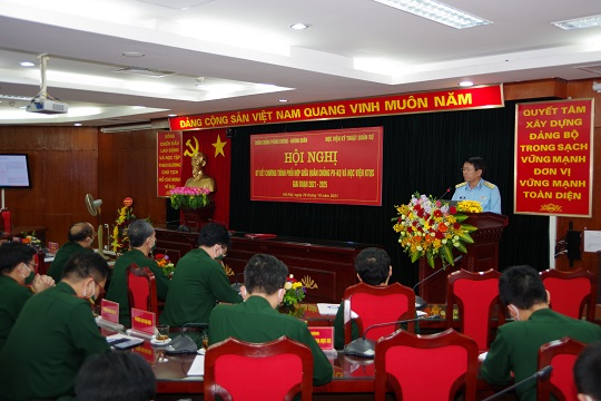 Tại Hội nghị, Đại tá Nguyễn Văn Công – Trưởng Phòng Kỹ thuật đã báo cáo về tình hình Học viện, về kết quả phối hợp giữa hai đơn vị giai đoạn 2016 – 2020, đặc biệt là các nội dung về nghiên cứu khoa học, khai thác làm chủ và bảo đảm kỹ thuật cho vũ khí, trang bị kỹ thuật (VKTBKT) PK-KQ thế hệ mới; nghiên cứu sản xuất, cung cấp thiết bị, vật tư, linh kiện, tư vấn chuyển giao công nghệ sửa chữa một số loại VKTBKT thế hệ mới và những nội dung chính của chương trình phối hợp giai đoạn 2021 – 2025.