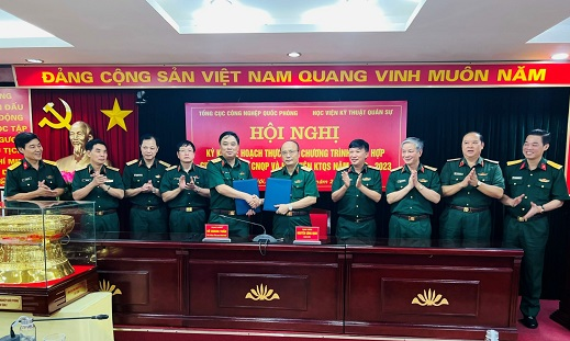 Ngày 06/9/2022, tại Hà Nội đã diễn ra Hội nghị Ký kết Kế hoạch thực hiện Chương trình phối hợp giữa Tổng cục CNQP và Học viện KTQS năm học 2022 – 2023. Trung tướng Hồ Quang Tuấn – Chủ nhiệm Tổng cục CNQP và Trung tướng Nguyễn Công Định – Giám đốc Học viện KTQS đồng chủ trì Hội nghị.