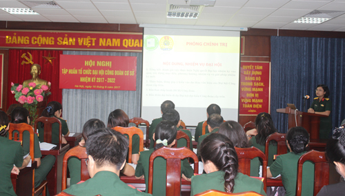 Quán triệt Chỉ thị số 739-CT/ĐU ngày 08/5/2017 của Thường vụ Đảng ủy Học viện về lãnh đạo Đại hội Công đoàn (ĐHCĐ) các cấp trong Học viện; Hướng dẫn số 2187/HD-CT ngày 30/6/2017 về tổ chức ĐHCĐ các cấp tiến tới ĐHCĐ Học viện lần thứ III, ĐHCĐ Quân đội lần thứ IX giai đoạn 2018 – 2023, đồng thời nhằm nâng cao kỹ năng, nghiệp vụ, phương pháp tổ chức ĐHCĐ các cấp cho cán bộ Công đoàn cơ sở, ngày 16/9, Phòng Chính trị đã tổ chức Hội nghị tập huấn công tác tổ chức ĐHCĐ các cấp nhiệm kỳ 2017 – 2022.