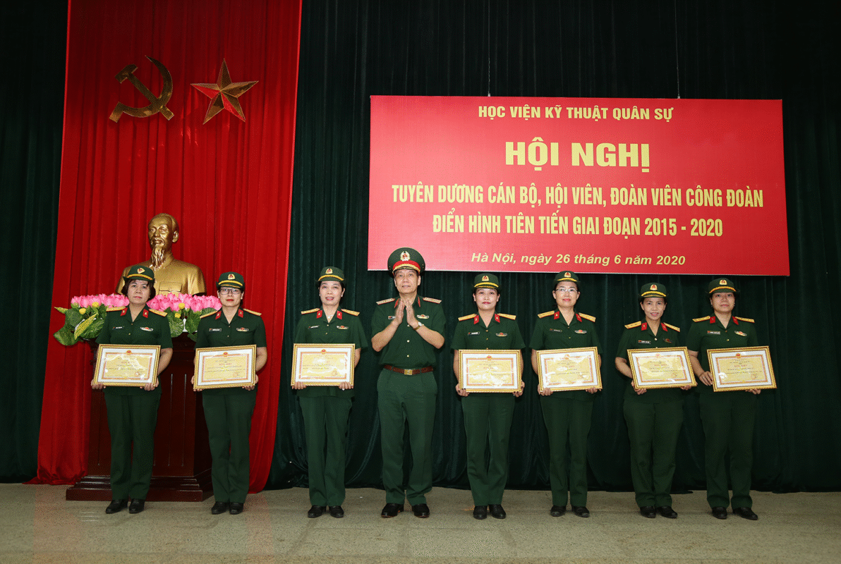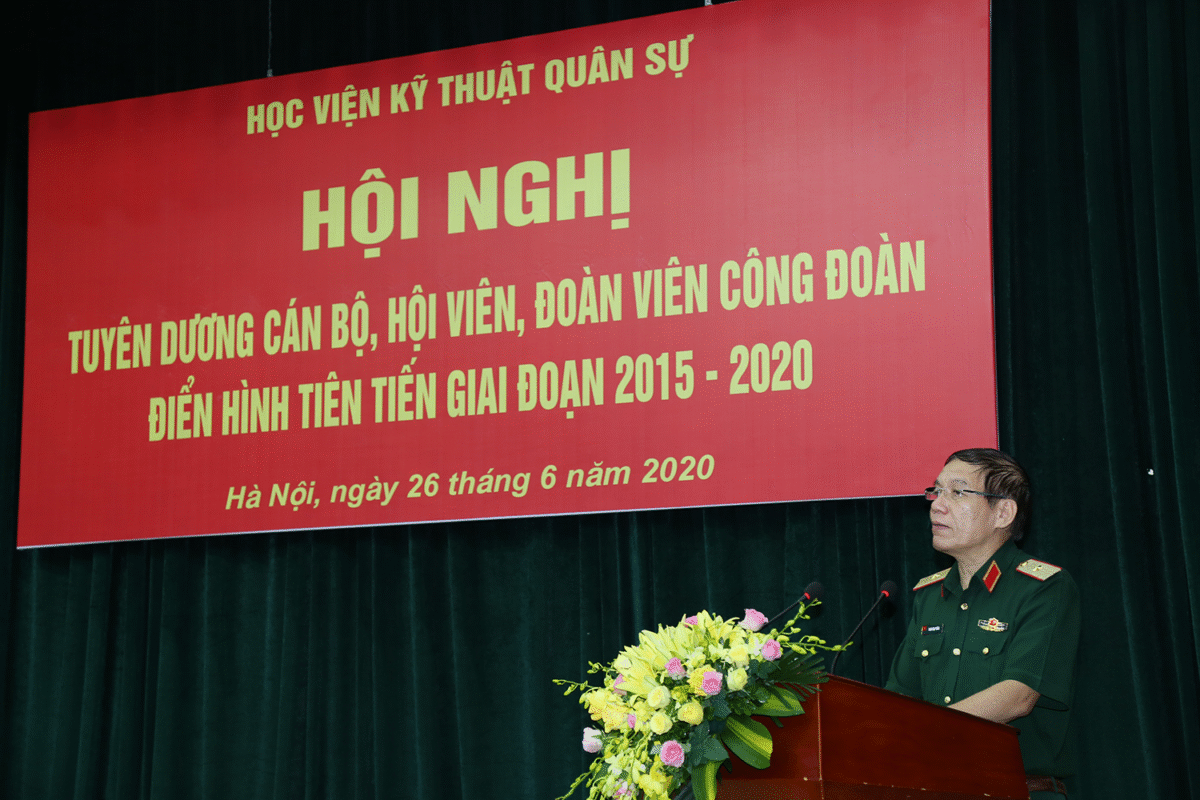 Chiều 26/6/2020, Học viện KTQS đã tổ chức Hội nghị Tuyên dương cán bộ, hội viên, đoàn viên công đoàn điển hình tiên tiến giai đoạn 2015-2020. Tới dự và chỉ đạo Hội nghị có Thiếu tướng Phạm Ngọc Thắng – Phó Chính ủy Học viện. Tham dự Hội nghị còn có đại diện các cơ quan, đơn vị trực thuộc Học viện và gần 200 cán bộ, hội viên, đoàn viên đại diện cho các tổ chức Hội Phụ nữ (HPN), Công đoàn cơ sở (CĐCS) trong Học viện.