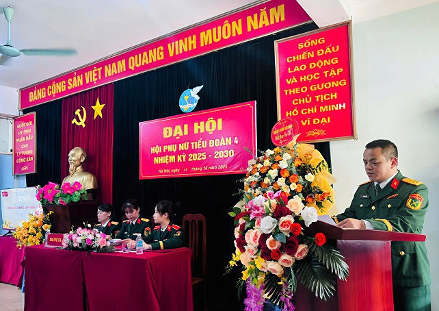 Thực hiện Hướng dẫn số 5445/HD-HV ngày 09/9/2025 của Phòng Chính trị, ngày 08/10/2025, Hội Phụ nữ Tiểu đoàn 4 đã tổ chức Đại hội nhiệm kỳ 2025-2030. Dự và chỉ đạo Đại hội có Thượng tá Lê Quang Tiến – Phó Bí thư Đảng ủy, Tiểu đoàn trưởng; Đại úy Trần Ngọc Du – Trợ lý Thanh niên, Ban Công tác quần chúng/Phòng Chính trị.