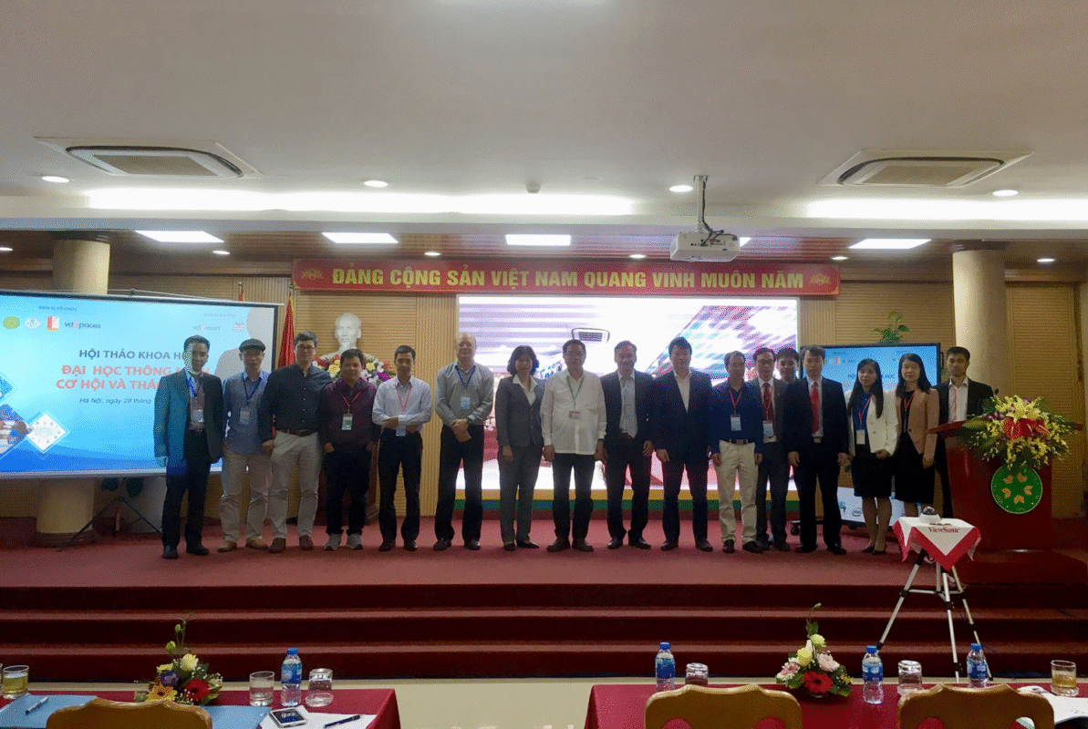 Ngày 28/11/2019, Khoa Công nghệ thông tin/Học viện Nông nghiệp Việt Nam phối hợp với Ban chủ nhiệm Đề tài KC4.0/19-25 “Nghiên cứu xây dựng mô hình chuyển đổi số cho trường đại học thông minh” tổ chức Hội thảo khoa học “Đại học thông minh: Cơ hội và thách thức”. Hội thảo tập trung thảo luận các nội dung về ứng dụng CNTT, giải pháp kỹ thuật cho trường đại học thông minh và phương pháp giáo dục đại học trong bối cảnh Cách mạng Công nghiệp lần thứ tư (CMCN 4.0).