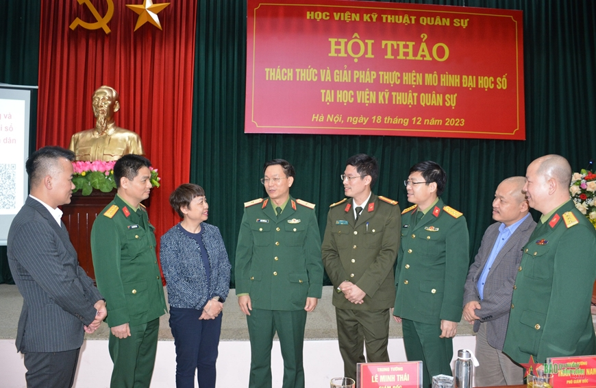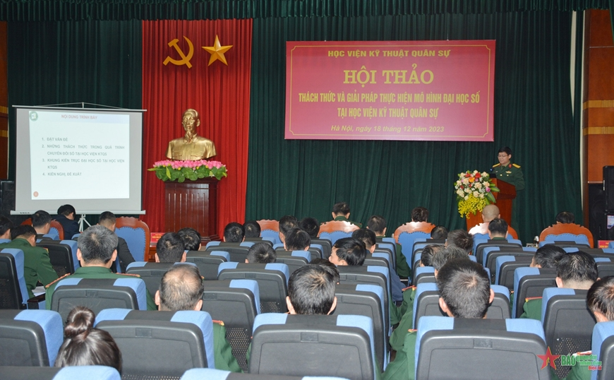 Chiều 18/12/2023, tại Hà Nội, Học viện KTQS tổ chức Hội thảo “Thách thức và giải pháp thực hiện mô hình Đại học số tại Học viện KTQS” dưới sự chủ trì của Thiếu tướng GS. TS Trần Xuân Nam – Phó Giám đốc Học viện.