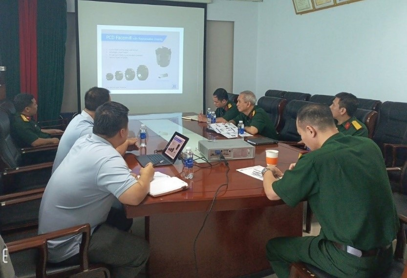 Mở đầu buổi Hội thảo, Trung tá TS Dương Xuân Biên đã nêu tính cấp thiết của việc nghiên cứu và sử dụng hiệu quả các loại dụng cụ cắt trong quá trình gia công tiện kim cương siêu chính xác. Các thành phần tham dự Hội thảo đã có nhiều ý kiến trao đổi, thảo luận để làm rõ những vấn đề kỹ thuật có liên quan trực tiếp. Đại diện Công ty TNHH HALCYON Technology Việt Nam, ông Lê Vũ Minh cũng trình bày các vấn đề liên quan đến năng lực công ty, khả năng đáp ứng chủng loại và giới thiệu về công nghệ của các loại dụng cụ cắt tương ứng mà phía công ty có thể cung cấp. Qua đây, hai bên đã tiến hành thảo luận sâu hơn về các vấn đề kỹ thuật và đưa ra phương hướng nghiên cứu, hợp tác.