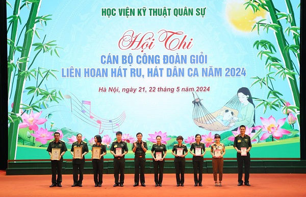 Trong hai ngày 21 – 22/5, Học viện KTQS tổ chức Hội thi Cán bộ Công đoàn giỏi, Liên hoan hát ru, hát dân ca cấp Học viện năm 2024. Dự và chỉ đạo Hội thi có Thiếu tướng Trần Văn Thưởng – Bí thư Đảng ủy, Chính ủy Học viện; Thiếu tướng Trần Văn Duy – Ủy viên Thường vụ Đảng ủy, Phó Chính ủy Học viện; Thượng tá Nguyễn Thị Thanh – Phó Trưởng ban Phụ nữ Quân đội. Tham dự Hội thi còn có đại biểu Ban Phụ nữ Quân đội, Ban Công đoàn Quốc phòng, đại biểu chỉ huy các cơ quan, đơn vị và gần 1.000 cán bộ, đoàn viên công đoàn, hội viên phụ nữ, đoàn viên thanh niên Học viện.