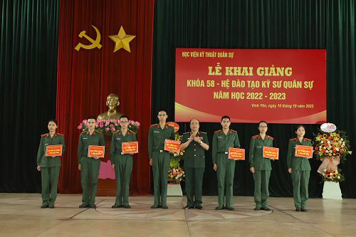 Cũng tại Lễ Khai giảng, Giám đốc Học viện đã trao 07 suất học bổng cho 07 học viên có điểm trúng tuyển cao nhất vào Học viện KTQS năm 2022.