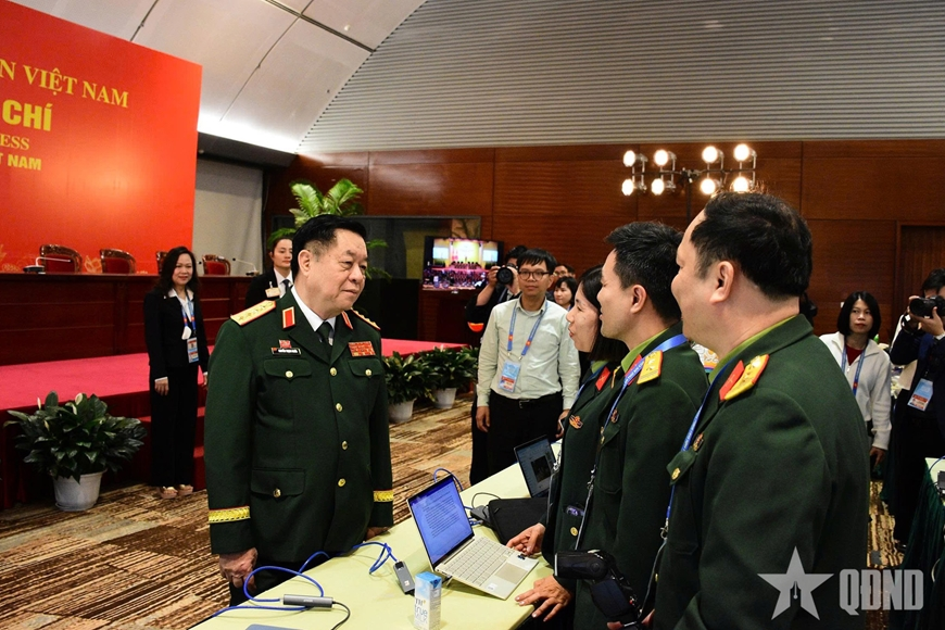 Trước giờ khai mạc trọng thể đại hội, Đại tướng Nguyễn Trọng Nghĩa, Ủy viên Bộ Chính trị, Bí thư Trung ương Đảng, Ủy viên Thường vụ Quân ủy Trung ương, Chủ nhiệm Tổng cục Chính trị đã tranh thủ đến hỏi thăm điều kiện, tình hình tác nghiệp và động viên các phóng viên tại Trung tâm Báo chí của đại hội.