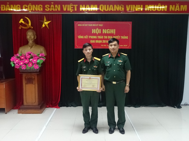 Để ghi nhận, biểu dương thành tích của tập thể Khoa và các cá nhân điển hình tiên tiến tiêu biểu xuất sắc trong phong trào TĐQT giai đoạn 2019-2024, tập thể Khoa và 02 đồng chí giảng viên đã được Chính ủy Học viện KTQS tặng Bằng khen. Nhân dịp này, thực hiện sự ủy quyền của Thủ trưởng Học viện, đồng chí Bí thư Đảng ủy Khoa đã trao tặng Bằng khen của Học viện cho các cá nhân điển hình tiên tiến.
