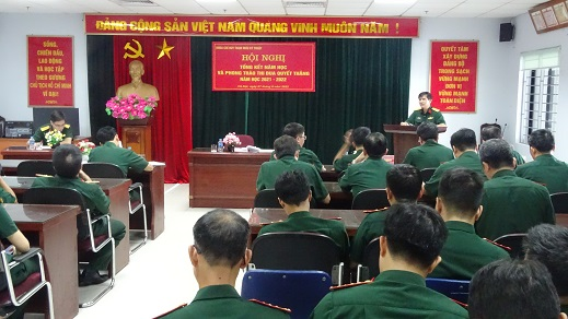Tại Hội nghị, Đại tá Hoàng Ngọc An – Chủ nhiệm khoa đã trình bày dự thảo Báo cáo Tổng kết năm học và Đại tá Lê Văn Tọa – Bí thư Đảng ủy khoa trình bày dự thảo Báo cáo Tổng kết phong trào thi đua Quyết thắng năm học 2021-2022.