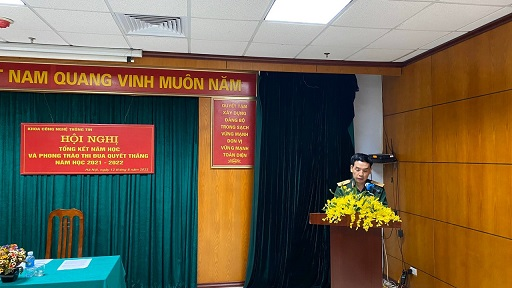 Sáng 12/8/2022, Khoa Công nghệ thông tin (CNTT) đã tổ chức Hội nghị Tổng kết năm học và phong trào thi đua Quyết thắng năm học 2021-2022. Đại tá PGS. TS Ngô Thành Long – Chủ nhiệm Khoa chủ trì Hội nghị. Về dự Hội nghị có Thiếu tướng Lê Minh Thái – Phó Giám đốc Học viện cùng đại biểu đại diện cơ quan Phòng Đào tạo, Phòng Sau đại học và toàn thể cán bộ, giảng viên, nhân viên trong Khoa.