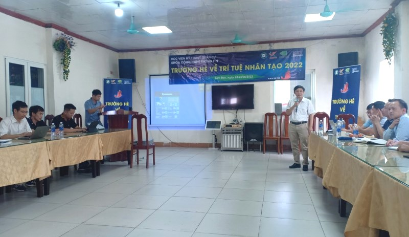 Trường hè về Trí tuệ nhân tạo (AI) do Khoa Công nghệ Thông tin tổ chức tại thị trấn Tam Đảo từ ngày 23-25/8/2022. Chương trình được tổ chức theo cả hình thức trực tiếp và trực tuyến, thu hút được sự quan tâm của cán bộ đến từ các đơn vị trong và ngoài Quân đội như: Viện Vũ khí, Tổng cục Công nghiệp Quốc phòng, Học viện Hải quân, Viện Công nghệ thông tin, Binh chủng Thông tin liên lạc, Cục Tiêu chuẩn Đo lường Chất lượng, Viện Kỹ thuật Phòng không – Không quân, Công ty cổ phần Công nghệ S9…