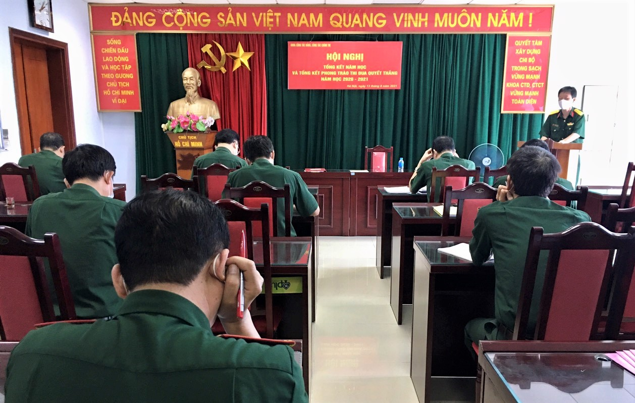 Tại Hội nghị, đồng chí Chủ nhiệm Khoa Công tác Đảng, Công tác Chính trị đã trình bày Báo cáo Tổng kết năm học và Báo cáo Tổng kết phong trào thi đua Quyết thắng năm học 2020-2021. Trong năm học 2020-2021, với tinh thần trách nhiệm, sự đoàn kết, thống nhất cao, các cán bộ, nhân viên, giáo viên trong Khoa đã hoàn thành tốt các nhiệm vụ trọng tâm như: Tiến hành giảng dạy theo phương pháp tích cực và giảng dạy trực tuyến cho các đối tượng trong toàn Học viện đạt hiệu quả cao; đẩy mạnh hoạt động nghiên cứu khoa học; hoàn thành tốt nhiệm vụ diễn tập H21A, B; tổ chức coi thi tốt nghiệp môn CTĐ, CTCT cho các đối tượng trong toàn Học viện…. Khoa cũng đã thực hiện nghiêm chế độ trực chỉ huy, trực ban, bảo đảm an toàn trong Học viện; tiến hành soạn thảo văn kiện chuyển trạng thái SSCĐ theo đúng quy định; phối hợp triển khai các biện pháp phòng chống sự lây lan của đại dịch Covid-19.