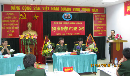 Ngày 13/4, Chi bộ Khoa Công tác Đảng, Công tác Chính trị (CTĐ, CTCT) đã tổ chức thành công Đại hội nhiệm kỳ 2015 – 2020. Đến dự và chỉ đạo Đại hội có Trung tướng Trần Tấn Hùng – Bí thư Đảng ủy, Chính ủy Học viện. Tham dự Đại hội còn có đại diện cơ quan Phòng Chính trị, Phòng Đào tạo, Phòng Khoa học Quân sự, Phòng Khảo thí và Đảm bảo chất lượng giáo dục – đào tạo cùng toàn bộ các đảng viên trong Khoa.