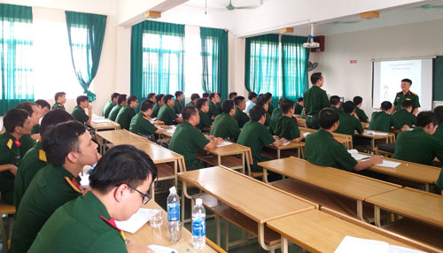 Thực hiện kế hoạch dự giảng, giảng mẫu, giảng phương pháp tích cực học kỳ I năm học 2018 – 2019, chiều ngày 11/9, tại hội trường H1-301 (Vĩnh Yên), Khoa Công tác Đảng, Công tác chính trị (CTĐ, CTCT) đã tổ chức cho cán bộ, giáo viên trong Khoa dự giảng môn Phương pháp Nghiên cứu khoa học do Thiếu tá ThS Phạm Thái Hòa – Giáo viên Bộ môn Tâm lý – Giáo dục giảng dạy cho lớp Liên thông Vũ Khí, Đạn, Xe Quân sự khóa 35.