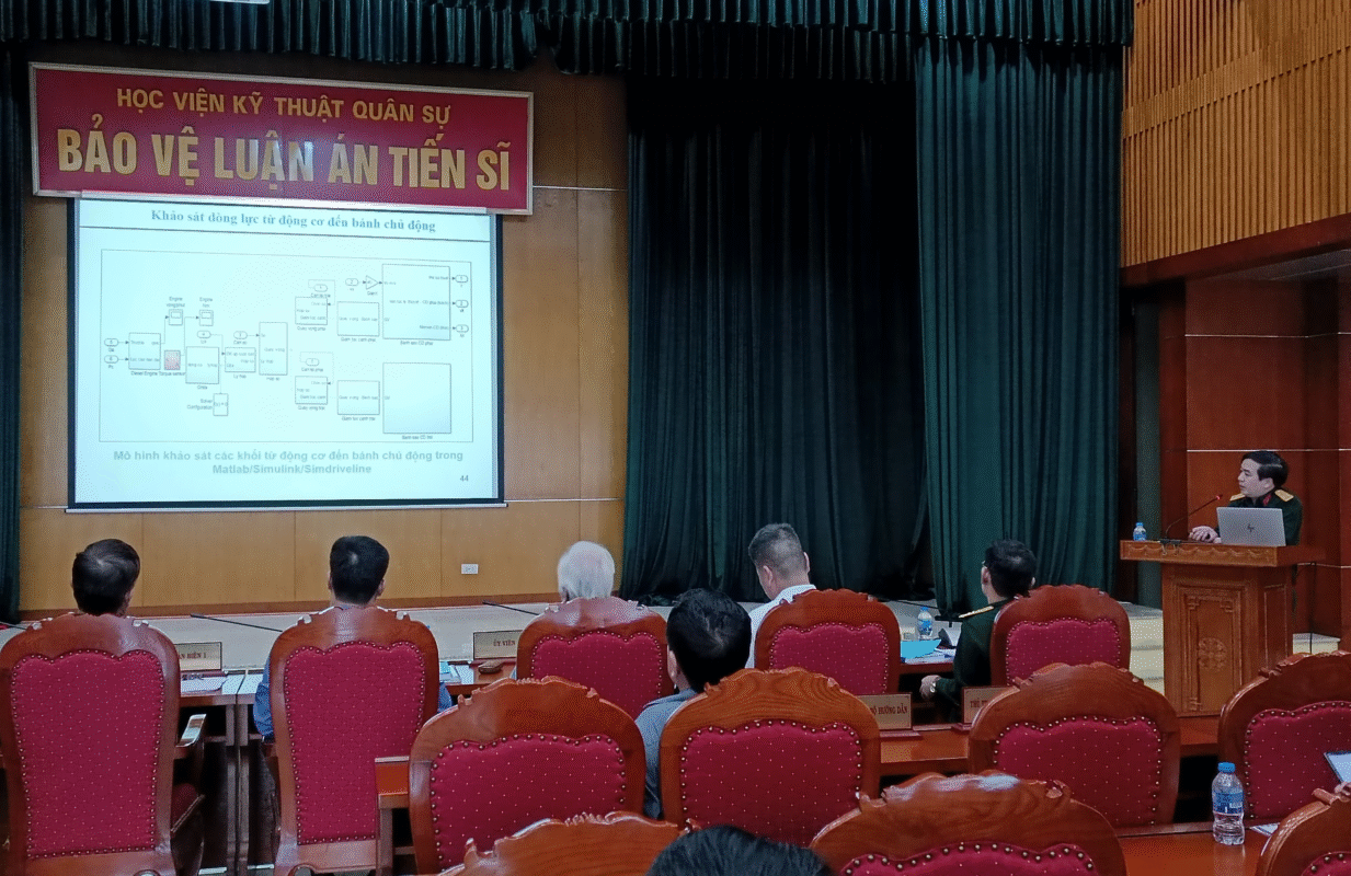 Sáng 13/10/2022, Bộ môn Tăng thiết giáp – Khoa Động lực đã tổ chức bảo vệ luận án tiến sĩ cấp cơ sở cho NCS Phạm Trung Kiên với đề tài: “Nghiên cứu động lực học chuyển động thẳng của xe xích cao tốc quân sự có kể đến phân bố áp suất của tải trọng lên nền đất”, chuyên ngành Kỹ thuật Cơ khí động lực, mã số: 9.52.01.16 do Đại tá TS Nguyễn Đình Tuấn hướng dẫn.