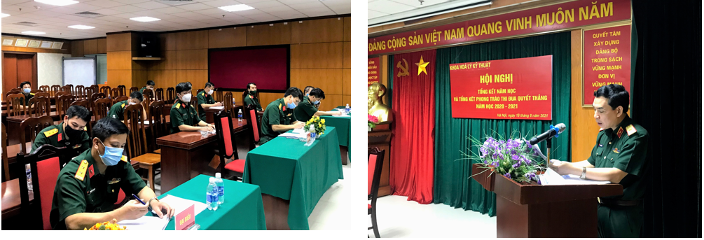 Sáng 19/8/2021, Khoa Hóa – Lý kỹ thuật đã tổ chức Hội nghị Tổng kết năm học và phong trào thi đua Quyết thắng năm học 2020-2021. Hội nghị diễn ra trong bối cảnh toàn Học viện đang thực hiện nghiêm Chỉ thị 16/CT-TTg của Thủ tướng Chính phủ, Chỉ thị số 100/CT-BQP ngày 07/8/2021 của Bộ Quốc phòng về SSCĐ, huấn luyện, giáo dục đào tạo, xây dựng chính quy, quản lý kỷ luật trong phòng, chống dịch Covid-19. Tới dự và chỉ đạo Hội nghị có Thiếu tướng Lê Minh Thái – Ủy viên Thường vụ Đảng ủy, Phó Giám đốc Học viện; đại diện Phòng Chính trị, Phòng Đào tạo, Phòng Sau đại học và 14 cán bộ, giảng viên của Khoa.