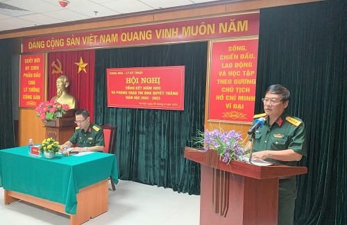 Chiều 09/8/2023 Khoa Hóa – Lý kỹ thuật đã tổ chức Hội nghị Tổng kết năm học và Phong trào thi đua Quyết thắng năm học 2022-2023. Tới dự và chỉ đạo Hội nghị có Đại tá Mai Quang Huy – Phó Giám đốc Học viện; đại diện các Phòng, Ban chức năng trong Học viện cùng toàn thể cán bộ, giảng viên, nhân viên trong Khoa.