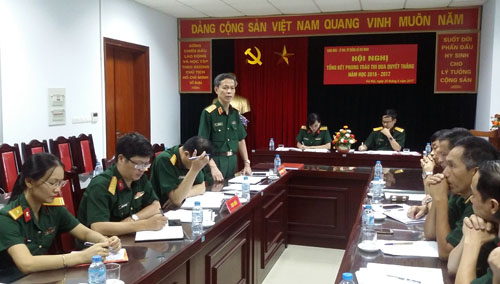 Thay mặt lãnh đạo, chỉ huy Khoa, Đại tá TS Trần Văn Riễn – Chủ nhiệm Khoa đã trình bày báo cáo tổng kết phong trào thi đua Quyết thắng năm học 2016 – 2017. Báo cáo đã nêu rõ những kết quả trong thực hiện các nhiệm vụ, trọng tâm là công tác giáo dục đào tạo, nghiên cứu khoa học, cụ thể: Khoa đã hoàn thành xuất sắc nhiệm vụ giảng dạy cho các đối tượng; Khoa hoàn thành 02 đề tài cấp ngành, 07 đề tài cấp Học viện; tiếp tục thực hiện 02 đề tài cấp Nhà nước, 05 đề tài cấp Học viện.Với tinh thần trách nhiệm cao, Hội nghị đã thảo luận sôi nổi với nhiều ý kiến đóng góp vào bản báo cáo tổng kết công tác năm học. Các ý kiến đã tập trung làm rõ, bổ sung thêm những kết quả đạt được, đồng thời nghiêm túc chỉ ra một số mặt còn hạn chế trong năm học vừa qua. Hội nghị đã giành nhiều thời gian thảo luận phương hướng, mục tiêu, nhiệm vụ và các giải pháp thực hiện nhiệm vụ năm học 2017 – 2018 trên cơ sở nhiệm vụ trọng tâm của đơn vị và Học viện.Thay mặt Đảng ủy, Ban Giám đốc Học viện, Thiếu tướng ThS Cao Minh Tiến đã ghi nhận và biểu dương những thành tích của Khoa trong năm vừa qua, đồng thời giao nhiệm vụ và căn dặn các đồng chí giáo viên trong Khoa dù trong bất cứ hoàn cảnh nào cũng phải giữ vững bản lĩnh chính trị của quân nhân cách mạng, thực sự mẫu mực, chuẩn mực để học viên, sinh viên noi theo, tích cực đổi mới phương pháp dạy học, nghiên cứu khoa học góp phần nâng cao chất lượng giảng dạy…Với tinh thần đoàn kết, dân chủ, Hội nghị biểu quyết nhất trí thông qua danh sách đề nghị Học viện tặng danh hiệu Đơn vị Quyết thắng cho Bộ môn Triết; danh hiệu Đơn vị tiên tiến cho Bộ môn Tư tưởng Hồ Chí Minh, danh hiệu Chiến sĩ thi đua cho 03 đồng chí và danh hiệu Chiến sĩ tiên tiến cho 06 đồng chí.Hội nghị tổng kết phong trào thi đua Quyết thắng năm học 2016 – 2017 của Khoa kết thúc trong tình thần đoàn kết, vui tươi, phấn khởi và quyết tâm thực hiện thắng lợi nhiệm vụ năm học 2017 – 2018.