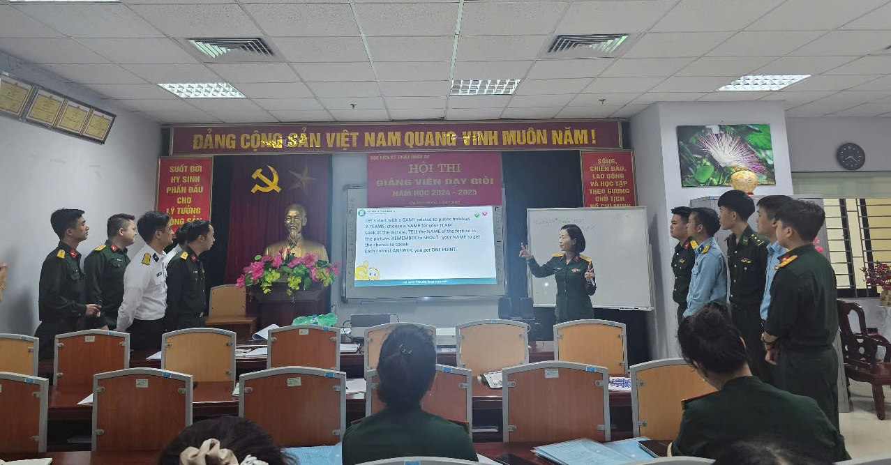 Thực hiện Kế hoạch số 440/KH-BTC ngày 29/01/2025 về tổ chức Hội thi Giảng viên dạy giỏi năm học 2024-2025 tại Học viện KTQS, ngày 24/3, Khoa Ngoại ngữ đã tổ chức Hội thi Giảng viên dạy giỏi cấp cơ sở nhằm mục đích đánh giá chất lượng giảng dạy của đội ngũ cán bộ, giảng viên trong Khoa, cũng như trao đổi kinh nghiệm và phương pháp giảng dạy.