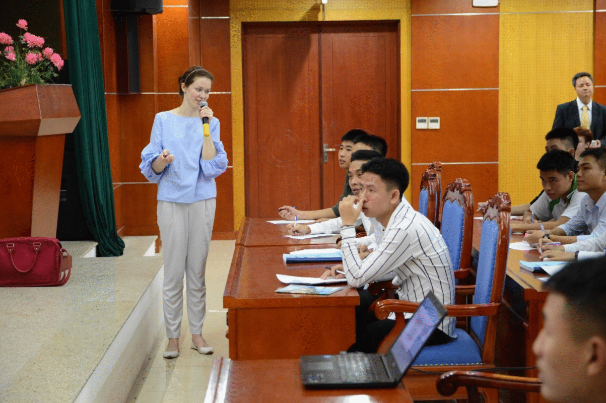 Tại lớp học, chuyên gia ngôn ngữ – giảng viên Balitskaya Daria đã trình bày một số nội dung: Phương pháp, kinh nghiệm sử dụng giáo trình «Русский язык», «Русские падежи», «Русский глагол» để dạy tiếng Nga trong giai đoạn đầu; Phương pháp và kinh nghiệm giảng dạy tiếng Nga kỹ thuật, đồng thời dạy mẫu một giờ học với nội dung “Tính từ trong tiếng Nga”. Giảng viên Sekochikhina Anastasia đã dạy mẫu giờ học với nội dung “Các dạng bài tập ngữ pháp về tính từ trong Tiếng Nga”.