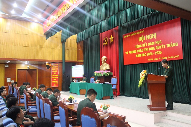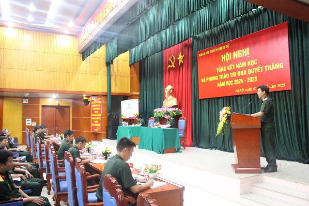 Tại Hội nghị, Đại tá Tạ Chí Hiếu – Chủ nhiệm Khoa đã trình bày Báo cáo Tổng kết năm học 2024-2025 và Đại tá Phạm Xuân Nghĩa – Bí thư Đảng ủy, Phó Chủ nhiệm Khoa trình bày Báo cáo Tổng kết Phong trào TĐQT năm học 2024-2025.