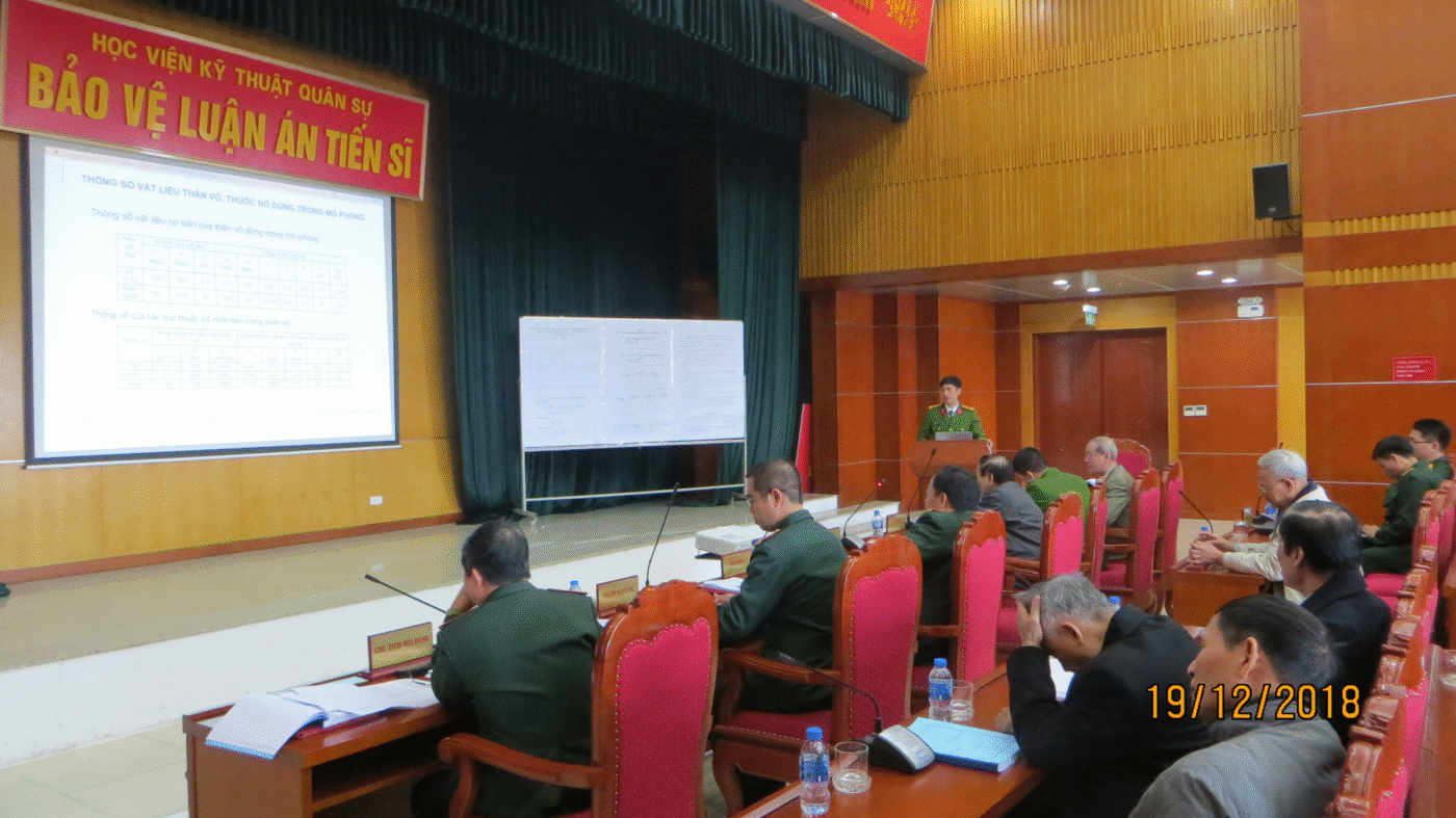 Sáng 19/12/2018 tại Học viện KTQS, Khoa Vũ khí đã tổ chức bảo vệ luận án tiến sĩ (LATS) cấp cơ sở cho NCS Lê Xuân Cường – Khóa 33 với đề tài “Nghiên cứu xác định loại vật nổ thông qua dấu vết ở hiện trường các vụ án có sử dụng chất nổ”, chuyên ngành Cơ Kỹ thuật, mã số: 9.25.01.01 do Đại tá TS Nguyễn Văn Thủy và GS. TS Ngô Sĩ Hiền hướng dẫn.
