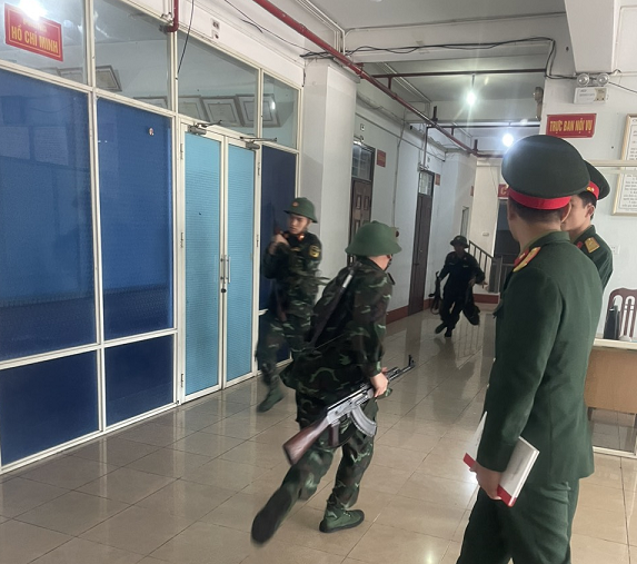 Đúng 10h00, chấp hành mệnh lệnh của đồng chí trực chỉ huy Học viện, đồng chí Trực ban tác chiến đã phát lệnh báo động. Ngay sau đó, các đồng chí cán bộ, học viên phân đội trực chiến khẩn trương cơ động, tiếp nhận vũ khí, trang bị, tập trung đội hình. Tình huống giả định được đưa ra là giải tán đám đông gây rối ở cổng số 5. Nghe xong mệnh lệnh của chỉ huy, từng bộ phận nhanh chóng tiếp cận các vị trí được phân công, áp sát mục tiêu một cách nhuần nhuyễn và xử trí linh hoạt các tình huống đề ra.