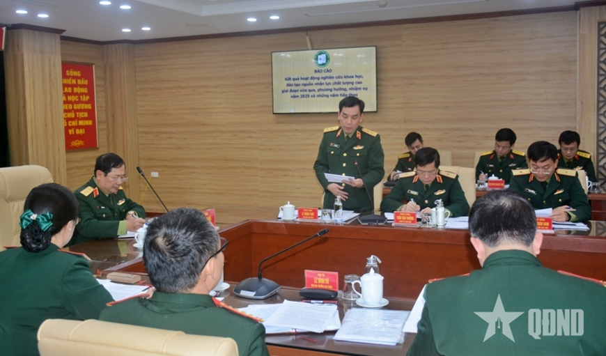 Báo cáo với Thủ trưởng Bộ Quốc phòng, Trung tướng Lê Minh Thái – Giám đốc Học viện KTQS cho biết: Thời gian qua, Đảng ủy, Ban Giám đốc Học viện thường xuyên chỉ đạo các cơ quan, đơn vị tổ chức phổ biến, quán triệt chấp hành thực hiện nghiêm chủ trương, đường lối của Đảng, chính sách, pháp luật của Nhà nước, các văn bản quy phạm pháp luật, các chiến lược, đề án của Quân ủy Trung ương, Bộ Quốc phòng về công tác khoa học và công nghệ.