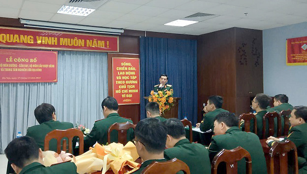 Tại buổi lễ, Đại tá Nguyễn Xuân Bàng – Bí thư Đảng uỷ, Phó Viện trưởng Viện KTCTĐB đã công bố Quyết định số 7176/QĐ-HV ngày 02/12/2024 về việc triển khai thực hiện quyết định của Tổng Tham mưu trưởng Quân đội nhân dân Việt Nam về ban hành biểu tổ chức biên chế Học viện KTQS, trong đó có Viện KTCTĐB và các quyết định có liên quan. Theo quyết định, Bộ môn Cầu đường – Sân bay được tách thành hai bộ môn Đường – Sân bay và Cầu vượt sông; thành lập mới Trung tâm Nghiên cứu địa hình.