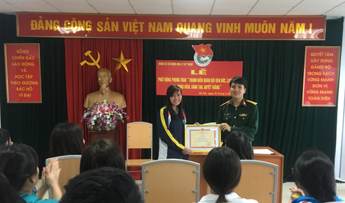 Cũng tại buổi Lễ, đồng chí Bí thư Đoàn cơ sở thông qua nội dung và chỉ tiêu phát động phong trào “Thanh niên Quân đội rèn đức, luyện tài, xung kích, sáng tạo, quyết thắng” giai đoạn 2017 – 2022. Các nội dung và chỉ tiêu phát động đều được các Chi đoàn nhất trí 100%. Ngoài việc quyết tâm hưởng ứng, thực hiện các nội dung và chỉ tiêu phát động, các chi đoàn căn cứ vào đặc thù của đơn vị đã nhấn mạnh, quyết tâm thực hiện thắng lợi những chỉ tiêu sát với tình hình thực tế của chi đoàn, cụ thể: Chi đoàn giáo viên quyết tâm nâng cao chất lượng nghiên cứu khoa học và công tác hướng dẫn nghiên cứu khoa học; Chi đoàn Khóa 12 quyết tâm hoàn thành xuất sắc đồ án tốt nghiệp; Chi đoàn các từ Khóa 13 đến Khóa 15 quyết tâm cải thiện kết quả học tập, nâng cao trình độ ngoại ngữ.