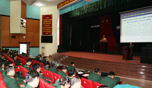 Ngay sau buổi Lễ, Học viện tổ chức Tập huấn quân sự năm 2018 cho đối tượng lớp 1, giới thiệu một số vấn đề về chiến tranh ủy nhiệm, thực tiễn và xu hướng phát triển vũ khí trang bị hiện nay; nguyên tắc tác chiến khu vực phòng thủ quân khu.