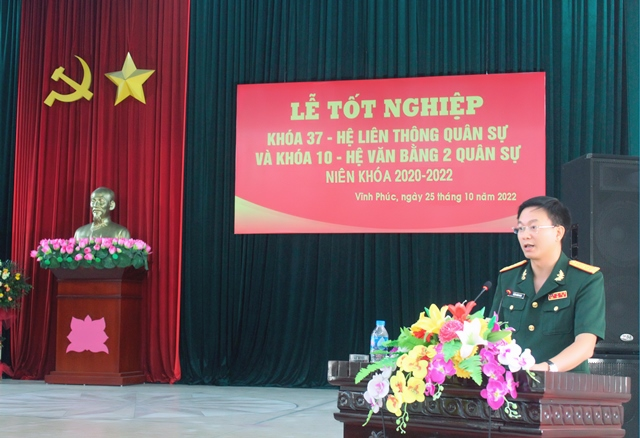 Sáng 25/10, tại Hội trường S3 – Trung tâm Huấn luyện 125 Vĩnh Phúc, Học viện KTQS đã tổ chức Lễ tốt nghiệp cho 47 học viên Khoá 37 – Hệ Liên thông đại học và Khóa 10 – Hệ Văn bằng 2 quân sự. Đến dự và chỉ đạo buổi Lễ có Đại tá GS. TS Trần Xuân Nam – Phó Giám đốc Học viện cùng đại diện các Phòng, Ban, Khoa chuyên ngành trong Học viện.