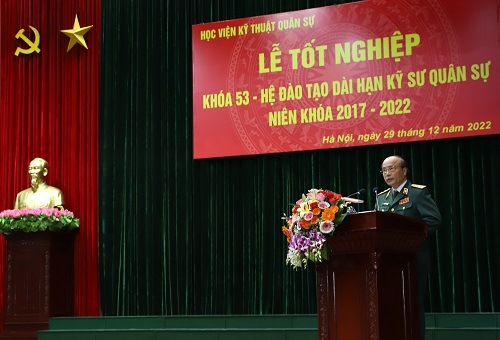 Trong dư âm hào hùng của những ngày Tháng 12 lịch sử, toàn Đảng, toàn dân và toàn quân ta thi đua lập thành tích chào mừng kỷ niệm 78 năm Ngày Thành lập Quân đội Nhân dân Việt Nam (22/12/1944 – 22/12/2022), 33 năm Ngày hội Quốc phòng toàn dân (22/12/1989 – 22/12/2022), sáng 29/12, Học viện KTQS đã long trọng tổ chức Lễ tốt nghiệp Khóa 53 Hệ đào tạo dài hạn Kỹ sư quân sự, niên khóa 2017 – 2022.