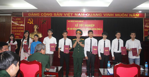Sáng 20/9, tại Phòng Hội thảo – S4, Học viện đã long trọng tổ chức Lễ tốt nghiệp cho sinh viên Hệ Cao đẳng Khóa 15 và Aptech, Arena Khóa 5. Tới dự buổi Lễ có Đại tá PGS. TS Lê Minh Thái – Phó Giám đốc Học viện, đại diện chỉ huy Phòng Đào tạo, Phòng Chính trị, Phòng Khảo thí và Đảm bảo chất lượng giáo dục-đào tạo, đại diện ban chủ nhiệm các khoa, bộ môn và giáo viên chuyên ngành có sinh viên tốt nghiệp, các đồng chí làm công tác quản lý sinh viên cùng 68 sinh viên tốt nghiệp.