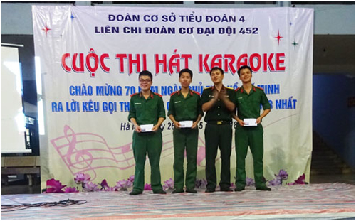 Hòa chung không khí thi đua sôi nổi của đợt thi đua đặc biệt “Làm theo lời Bác – Thi đua giành ba nhất” kỷ niệm 70 năm Ngày Bác Hồ ra lời kêu gọi thi đua ái quốc (11/6/1948 – 11/6/2018), tối 26/5, Liên chi đoàn (LCĐ) Đại đội 452 đã tổ chức Cuộc thi hát Karaoke. Đến dự, chỉ đạo và động viên Cuộc thi có các đồng chí trong Đảng ủy, chỉ huy đơn vị; các đồng chí trong Ban chấp hành Đoàn cơ sở (ĐCS), Ban chấp hành LCĐ; các đồng chí trong Ban tổ chức, Ban Giám khảo Cuộc thi cùng toàn thể đoàn viên, thanh niên trong LCĐ.