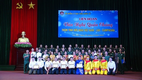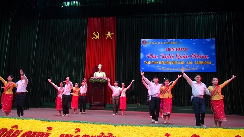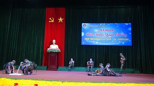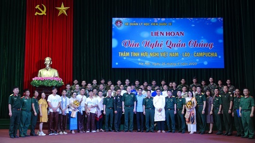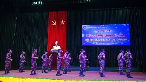 Đêm liên hoan văn nghệ với sự góp mặt của 10 tiết mục đến từ hai đội văn nghệ của Đoàn học viên quân sự Lào và Đoàn học viên Quân sự Campuchia. Các tiết mục là những tác phẩm nghệ thuật ca ngợi Bác Hồ kính yêu, tình yêu quê hương đất nước, truyền thống của ba nước Việt Nam – Lào – Campuchia. Chương trình được dàn dựng công phu, đa dạng hình thức biểu diễn như: Hát múa tập thể về đất nước Việt Nam, về những người thầy giáo, cô giáo, các điệu múa truyền thống Apsara của Campuchia và điệu múa Lăm vông của Lào, điệu nhảy tập thể Madison, Liên khúc Việt – Lào – Khmer Samakhi, các bài hát về tình Việt – Lào, đàn guita… đã đưa khán giả đến nhiều cung bậc cảm xúc của sự tươi vui và tinh thần tự hào về truyền thống của ba nước Việt Nam – Lào – Campuchia.