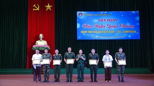 Hòa chung bầu không khí vui mừng phấn khởi toàn Học viện ra sức thi đua lập thành tích cao nhất chào mừng kỷ niệm 48 năm Ngày Giải phóng Miền Nam thống nhất đất nước (30/4/1975 – 30/4/2023), 137 năm Ngày Quốc tế lao động (01/5/1886 – 01/5/2023), đồng thời nằm trong chuỗi các hoạt động chào mừng kỷ niệm 40 năm Ngày Thành lập Hệ Quản lý học viên Quốc tế (QLHVQT) (01/8/1983 – 01/8/2023), tối 26/4, Hệ QLHVQT đã tổ chức đêm liên hoan văn nghệ quần chúng với chủ đề “Thắm tình hữu nghị Việt Nam – Lào – Campuchia”.