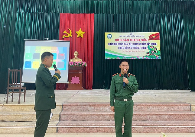 Ở phần thi tìm hiểu về Quân đội, đã có 07 đội tham gia đến từ các lớp. Những câu hỏi mang tính lịch sử, những mốc son gắn liền với quá trình hình thành, phát triển của Quân đội ta đã được các đội chơi trả lời xuất sắc. Sau cùng là các tiết mục văn nghệ được các hạt nhân văn nghệ trong Lớp chuẩn bị nhằm truyền tải nhiều thông điệp giàu ý nghĩa, ca ngợi Đảng quang vinh, Chủ tịch Hồ Chí Minh, cũng như về 80 năm xây dựng, chiến đấu và trưởng thành của QĐND Việt Nam.