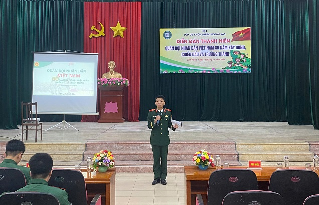Trong không khí thi đua sôi nổi chào mừng kỷ niệm 80 năm Ngày thành lập QĐND Việt Nam (22/12/1944-22/12/2024) và 35 năm Ngày hội Quốc phòng toàn dân (22/12/1989-22/12/2024), tối 12/12, Lớp Dự khóa nước ngoài K60, Hệ 1 đã tổ chức diễn đàn thanh niên với chủ đề “QĐND Việt Nam, 80 năm xây dựng, chiến đấu và trưởng thành”.