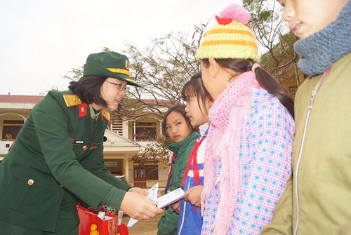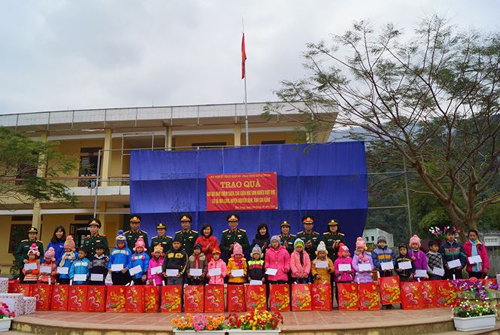 Cán bộ, nhân viên, sinh viên Học viện KTQS trao tặng quà cho các em học sinh