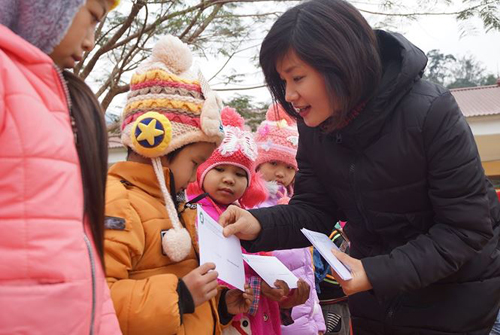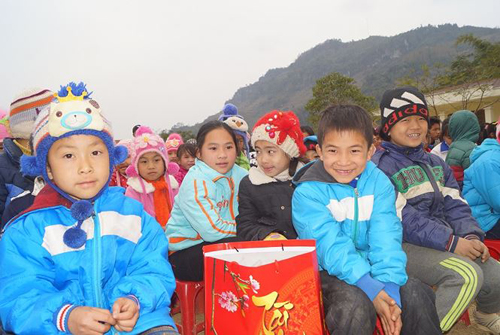 Niềm vui của các em học sinh xã Mai Long trong những ngày đông giá rét khi đoàn công tác đến trao tặng quà