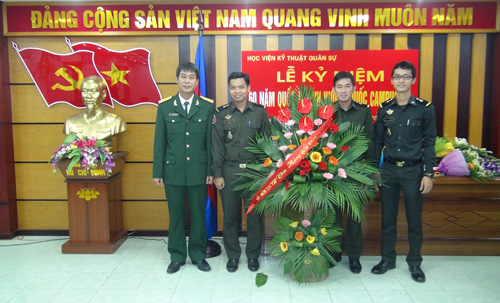 Thay mặt Đảng ủy, Ban giám đốc Học viện, Thiếu tướng Trần Tấn Hùng nhiệt liệt chúc mừng những thành tựu to lớn mà nhân dân Căm-pu-chia đã giành được trong 60 năm qua. Chúc nhân dân Căm-pu-chia trong thời gian tới tiếp tục thành công nhiều hơn nữa trong sự nghiệp xây dựng, phát triển đất nước. Chúc các bạn học viên mạnh khỏe, học tập tốt, rèn luyện nghiêm phấn đấu trở thành những cán bộ, sỹ quan chuyên môn kỹ thuật quân sự đủ phẩm chất, trình độ, năng lực về phục vụ đất nước và quân đội Căm-pu-chia.