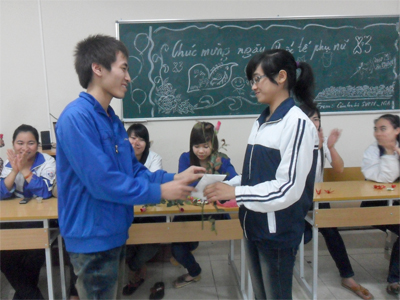 Ban chấp hành chi đoàn các lớp của sinh viên Khóa 10, sinh viên tình nguyện tại khu Xuân Phương đã tổ chức hoạt động chúc mừng các sinh viên nữ bằng nhiều hình thức sáng tạo, vui nhộn và tình cảm.
