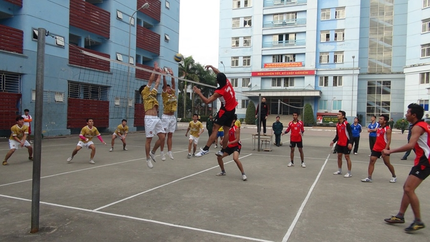 Các học viên giao lưu bóng chuyền tại Học viện KTQS