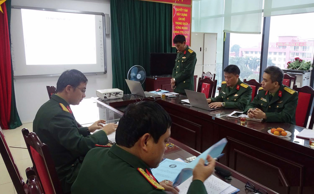 Thực hiện Quyết định Số 3967/QĐ-HV ngày 09/11/2020, sáng 21/12/2020, Hội đồng nghiệm thu đề tài thường xuyên cấp Học viện đã tổ chức nghiệm thu 02 đề tài do cán bộ, giáo viên Khoa Công tác Đảng, Công tác chính trị (CTĐ,CTCT) thực hiện. Tham gia Hội đồng nghiệm thu có Đại tá PGS. TS Trần Đình Thắng – Chủ nhiệm Khoa CTĐ,CTCT, Chủ tịch Hội đồng cùng các thành viên: Trung tá TS Phạm Thái Hòa, Thượng tá ThS Nguyễn Bình Thoan – Khoa CTĐ,CTCT; Trung tá TS Phạm Tuấn Anh – Khoa Mác-Lênin, Tư tưởng Hồ Chí Minh; Thượng tá Khổng Xuân Thái – Tiểu đoàn 2.